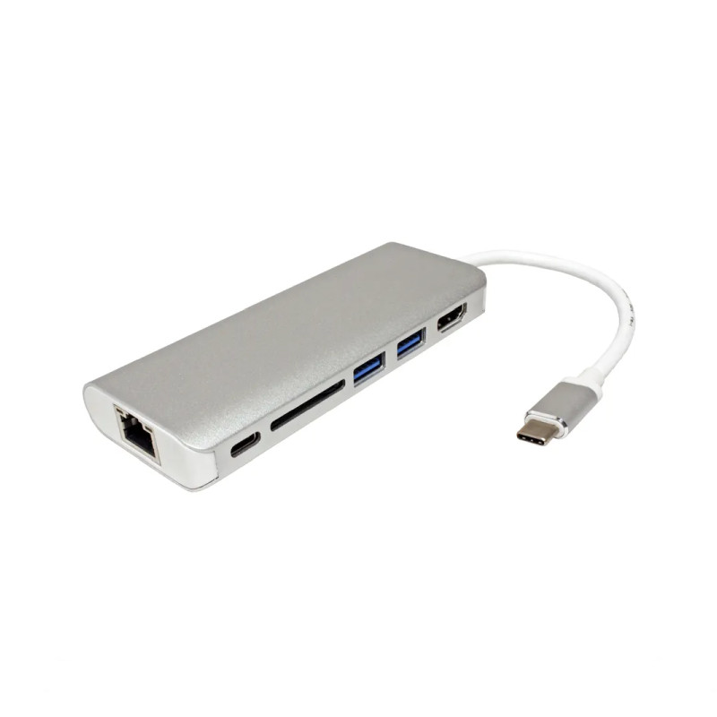 Roline USB-C docking station, 4K HDMI, 2×USB 3.0/3.2 Gen 1, 1×SD/TF čitač kartica, 1×USB-C power, 1×G-LAN