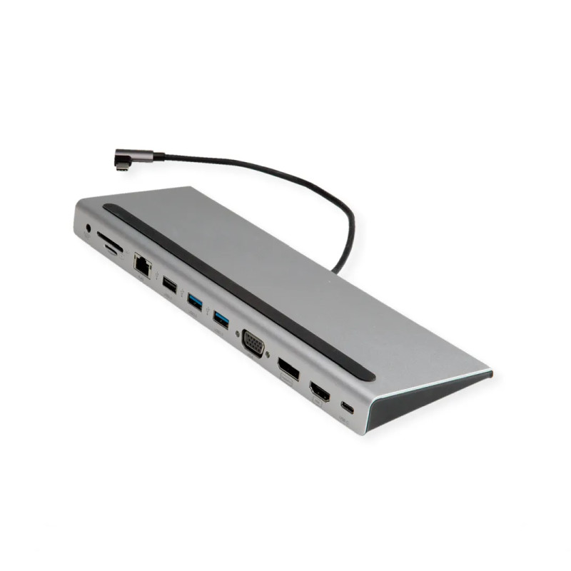 Roline USB-C Multiport Docking Station, 4K HDMI/DP, VGA, 2× USB3.2, 1× USB2.0, 1× SD/Micro SD čitač kartica, 1× USB-C PD, 1× G-LAN, 1×3.5mm
