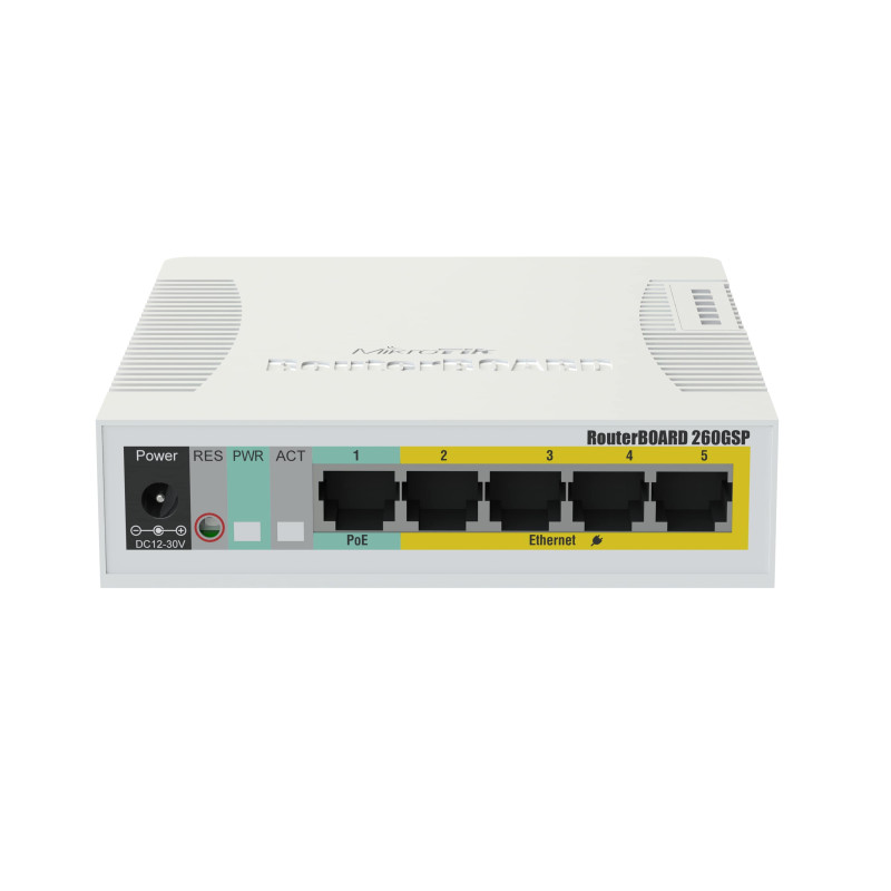 Mikrotik RB750r2 hEX lite, 850MHz CPU, 64MB RAM, 5×LAN, RouterOS L4, plastično kućište, PSU