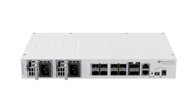Mikrotik Cloud Router Switch CRS804-4DDQ-hRM, 48xG-LAN (svi PoE-out), 2x10G SFP+, 4x400G QSFP56-DD utora, RouterOS v7, 1U rackmount, IP20