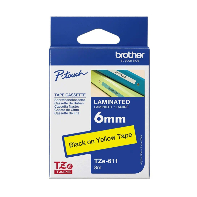 Brother TZE611 žuta traka s crnim ispisom - širina 6 mm