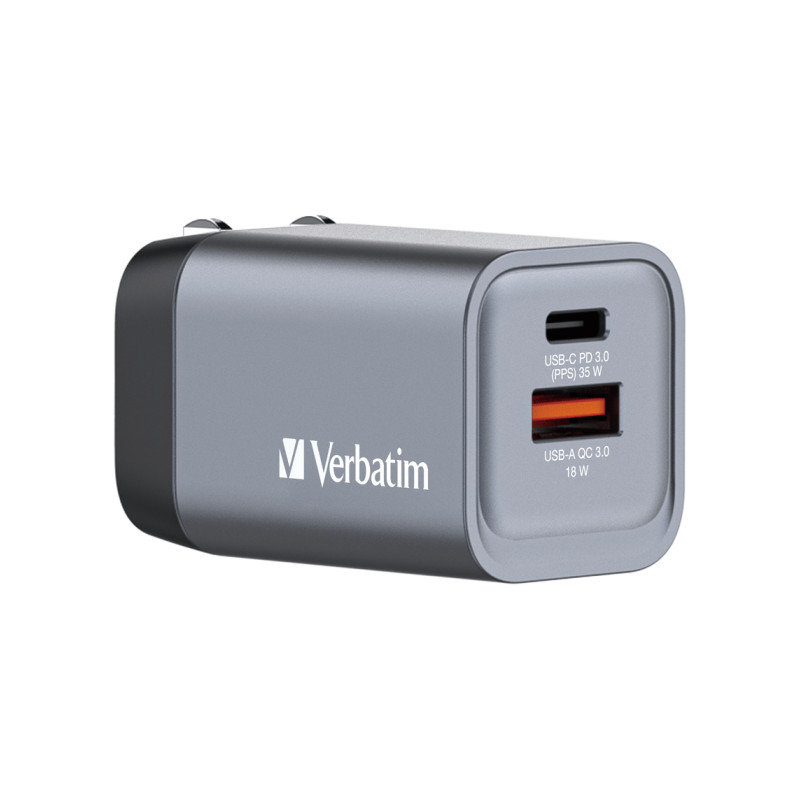 Verbatim GNC-35 GaN zidni punjač 35W, 1×USB-C PD 35W / 1×USB-A QC3.0